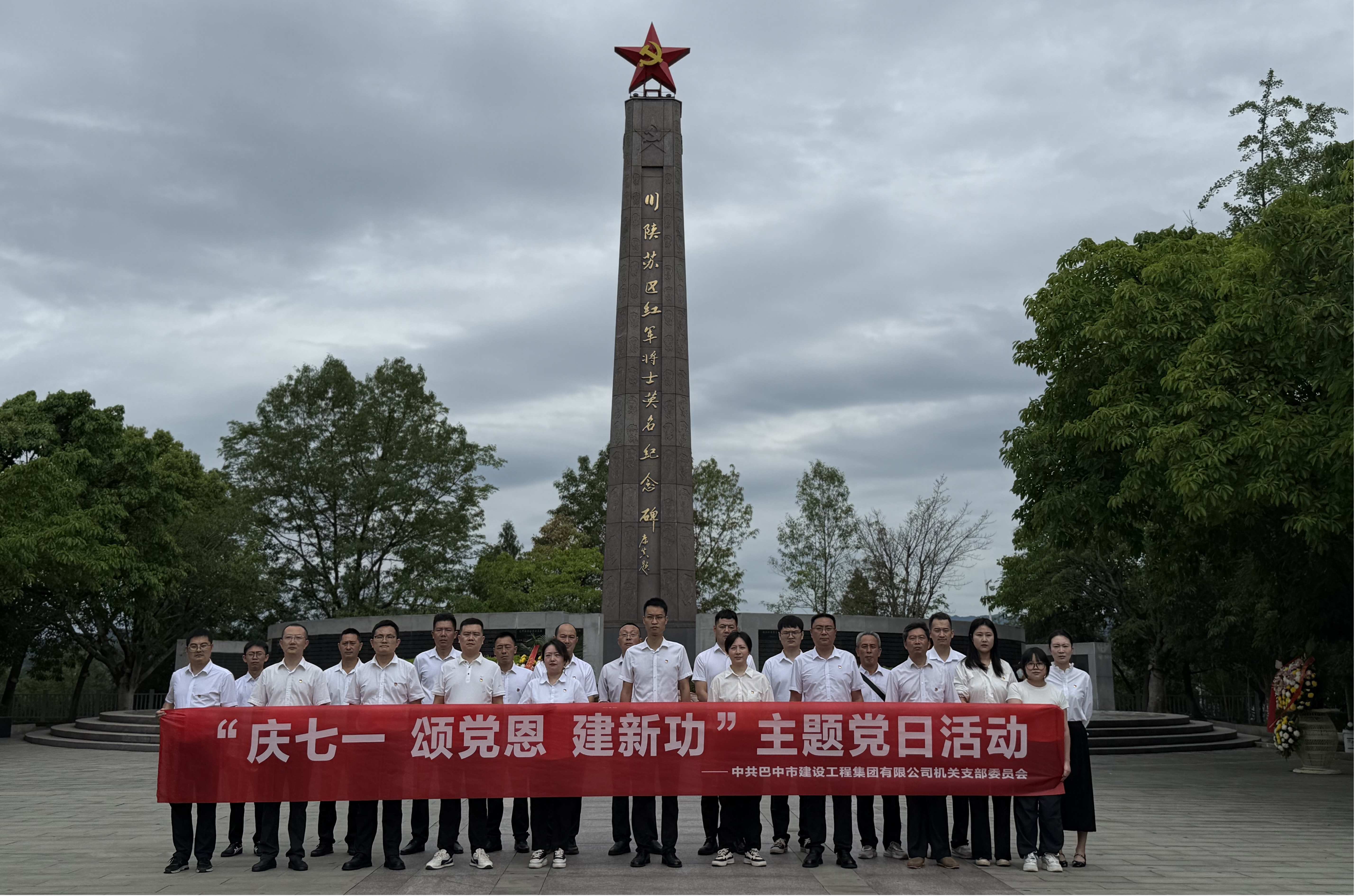 在中国共产党成立104周年之际,建工集团机关党支部于7月3日组织全体党员前往川陕苏区将帅碑林,开展“庆七一・颂党恩・建新功”主题党日活动。通过庄重的祭奠仪式以及沉浸式现场教学,引导党员干部传承红色基因,践行初心使命。