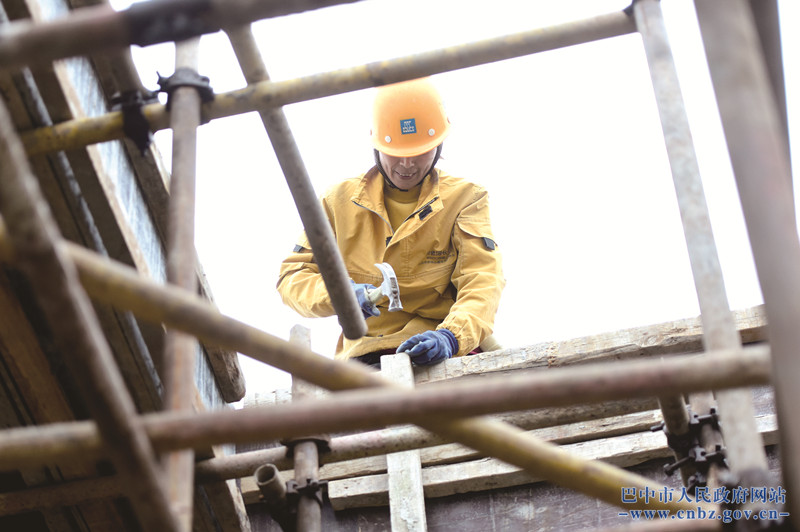 2月20日,巴中经开区东西部协作产业园工人正在绑扎钢筋。