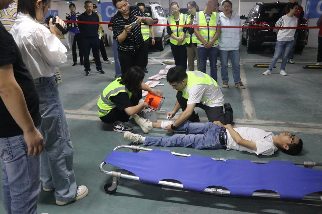 紧接着,工作人员模拟人员受伤场景,现场示范心肺复苏和包扎的正确方法。从判断意识、检查呼吸到实施心肺复苏,从伤口包扎的技巧到注意事项,每一个步骤都讲解得细致入微。参演人员认真学习,积极参与实际操作,提高了应对突发医疗事件的能力。