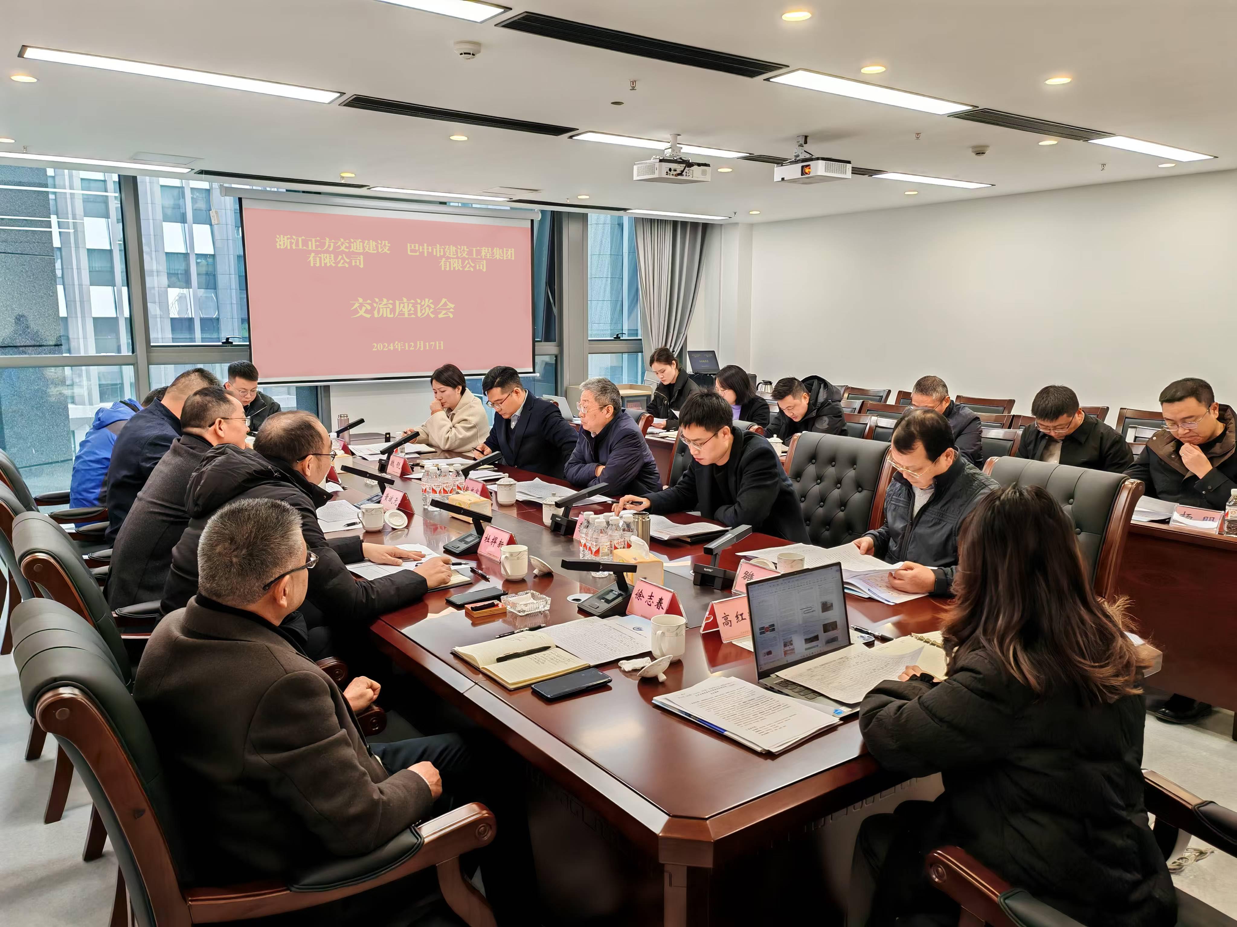 2024年12月17日,浙江正方控股集团有限公司总裁、浙江正方沥青混凝土科技有限公司董事长黄斌元携浙江正方交通建设有限公司董事长金泉一行到巴中建工集团考察交流,共同探讨合作事宜。