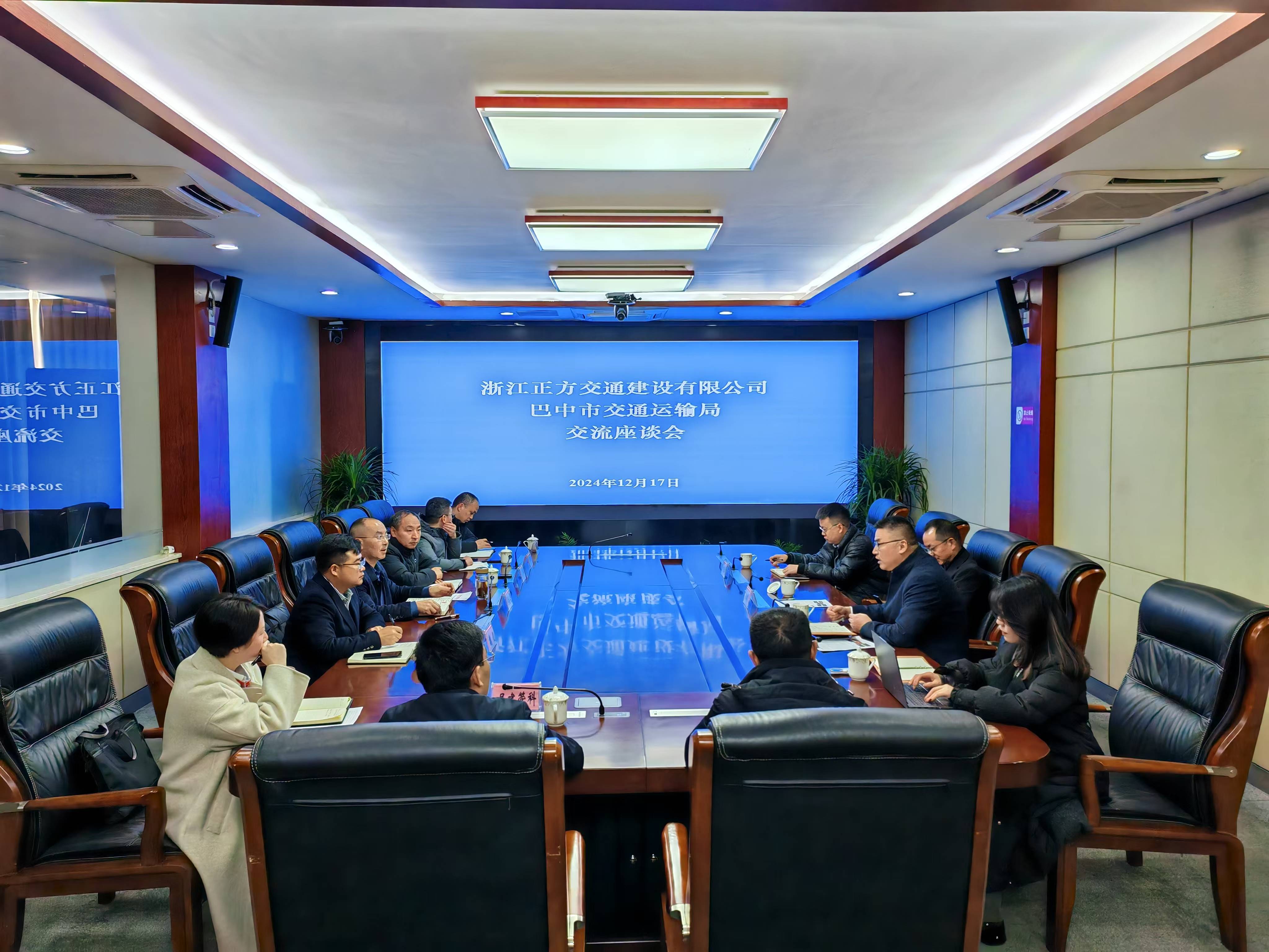 下午,双方同行拜访了巴中市交通局并参加座谈会。会上,黄斌元、金泉先后介绍了浙江正方交通建设有限公司当前的发展形势,以及具备的技术优势,并表达了与巴中建工集团的合作愿景。市交通局副局长吴歆勇热忱欢迎浙江正方交通建设有限公司参与到巴中的交通建设中来,并详细介绍了巴中市“十四五”“十五五”交通规划,希望浙江正方交通建设有限公司与巴中建工集团深入交流对接,充分利用好各自资源优势,建立紧密的合作联系机制,创新合作模式,真正在高水平合作共建中实现资源共享、优势互补、共赢发展。