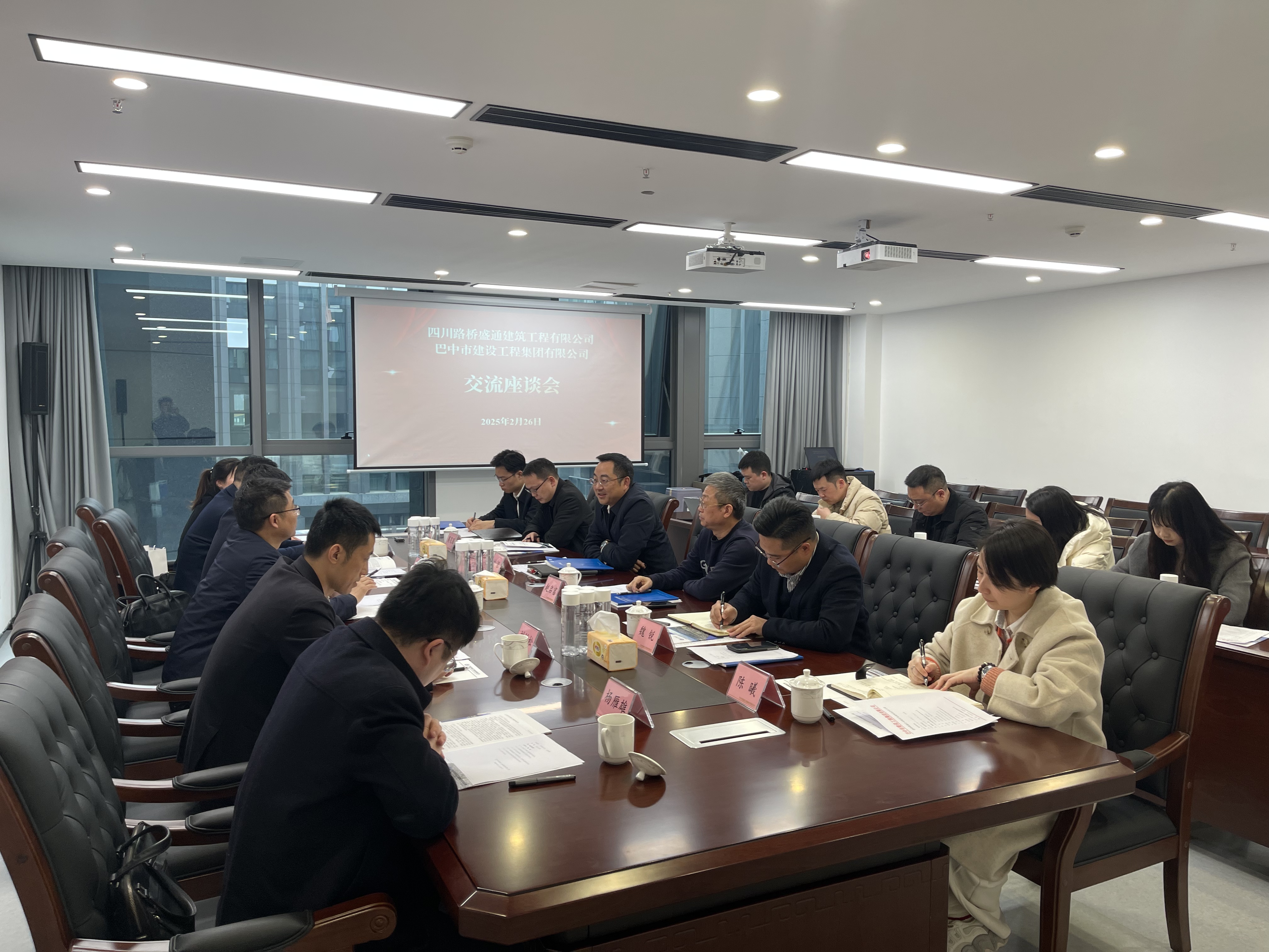 会上,双方就企业现状、发展规划及合作方向进行了深入探讨和交流。巴中建工集团表示,希望与四川路桥盛通公司尽快实现实质性合作,借助四川路桥盛通公司的资源和技术力量,在人才培养、资质提升、业务拓展等方面获得支持,同时也愿与四川路桥盛通公司共享巴中本地资源,实现互利共赢。四川路桥盛通公司回应称,双方在业务上存在互补空间,可以在项目合作、技术交流、人才培养等多方面开展合作,如组织联合体参与项目投标,共同打造项目团队,助力巴中建工集团提升管理水平、培养专业人才,推动业务发展。