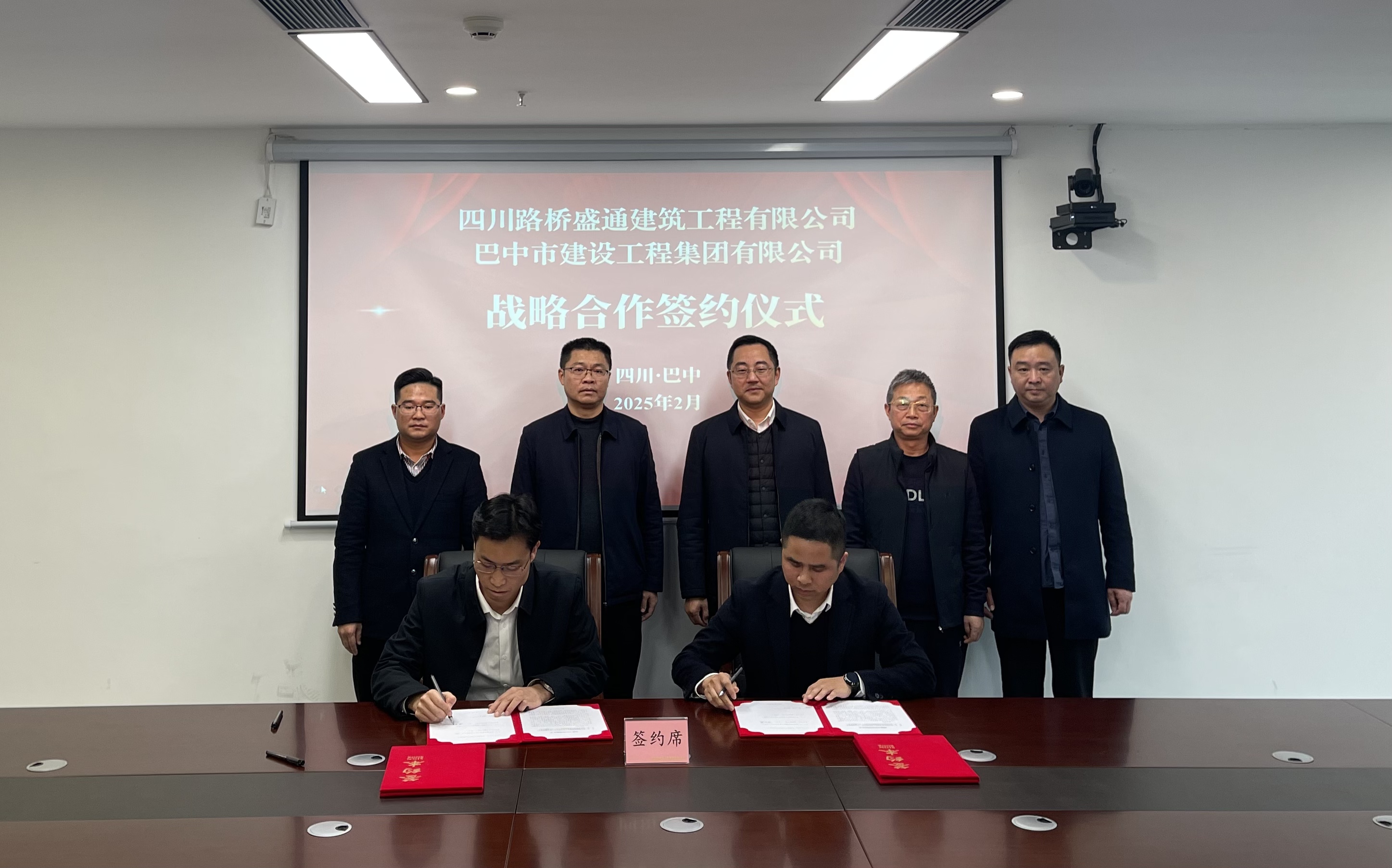 2025年2月26日,四川路桥盛通公司党委书记、董事长廖郁一行到访巴中建工集团,举行合作交流会议并签订《战略合作框架协议》。市国资运营集团总经理刘张、总工程师赵启富出席会议。
