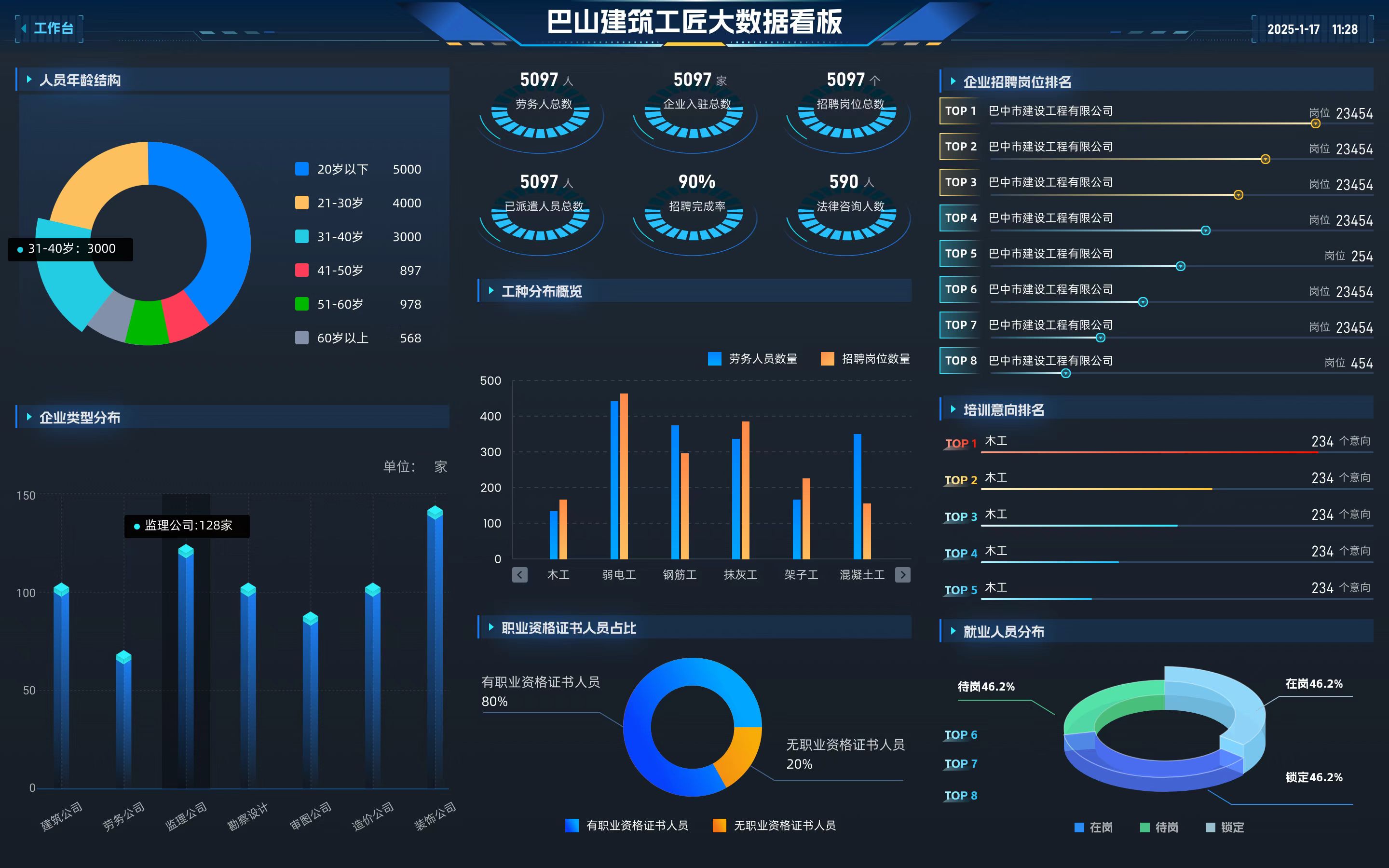 作为劳务输出大市,巴中市2024年劳务从业人员105万余人中,建筑劳务人员超40万人。但长期以来,劳务市场存在信息不对称、用工不规范、权益保障难等问题,全市建筑企业及劳务公司面临“用工荒”与“求职难”并存的困境。“巴山建筑工匠”正是瞄准这一矛盾,通过集成管理人才、建筑工人、学员培训、从业状态等数据库资源,构建起覆盖